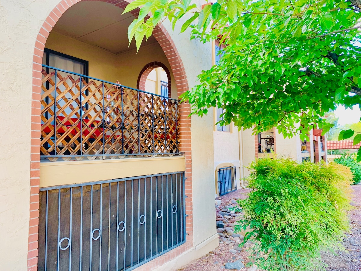 TucsonNicely decorated fully equipped condominium with balcony & view, bedroom w/ queen-sized bed, full kitchen, dining table, living room, private entrance and access to swimming pool (not heated.)