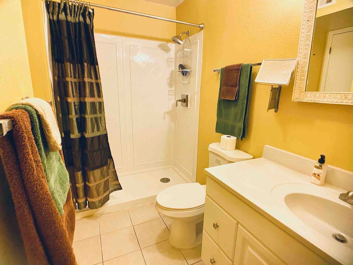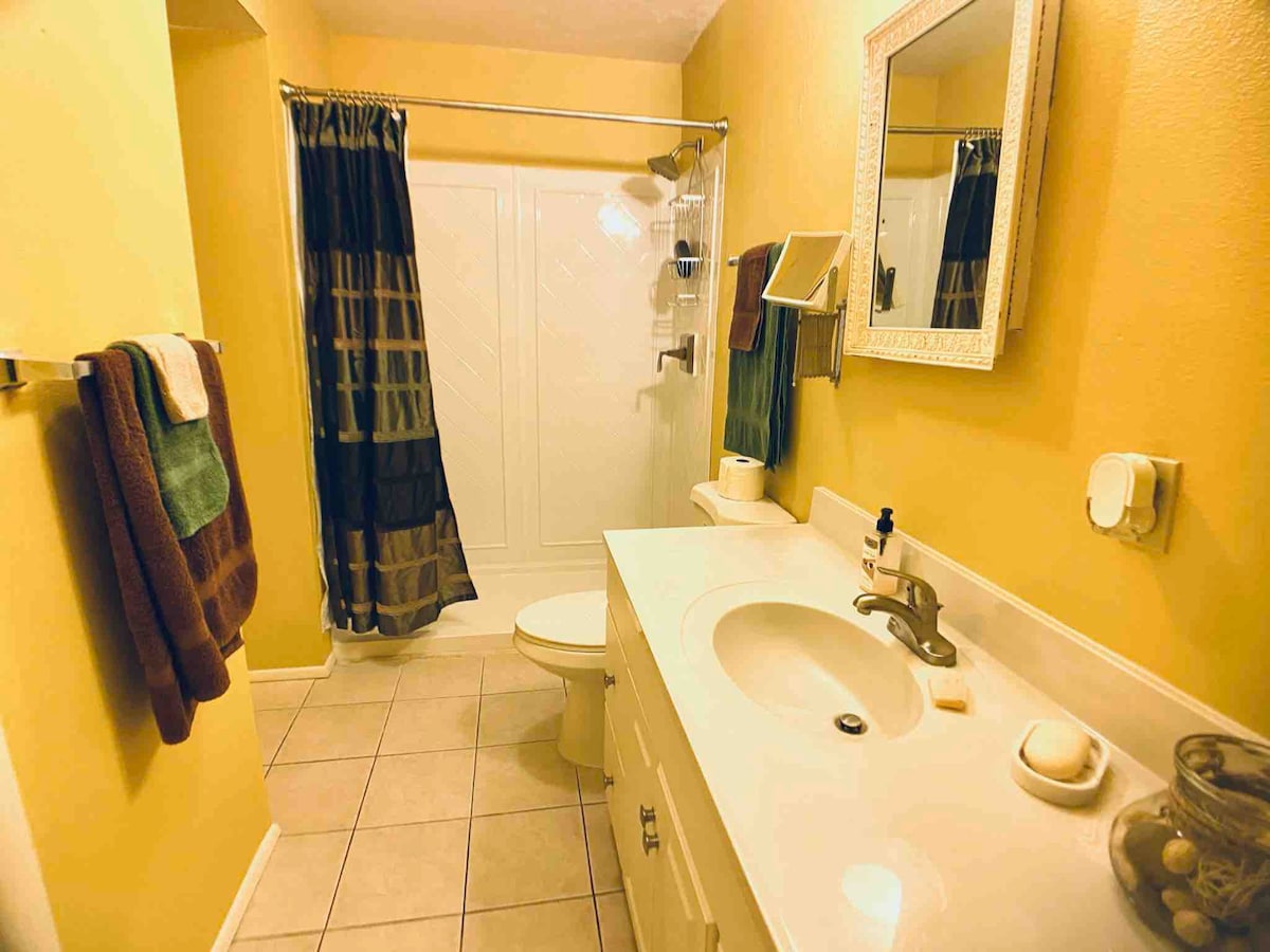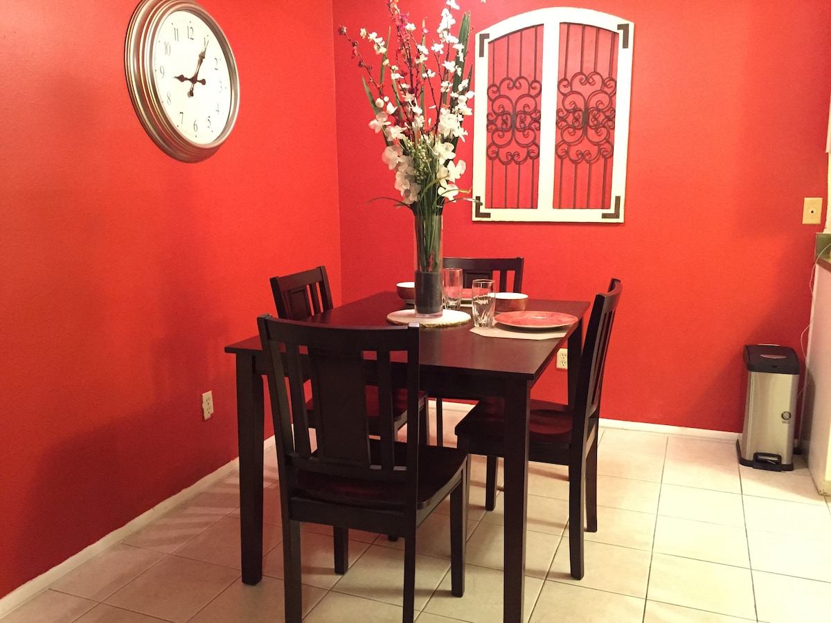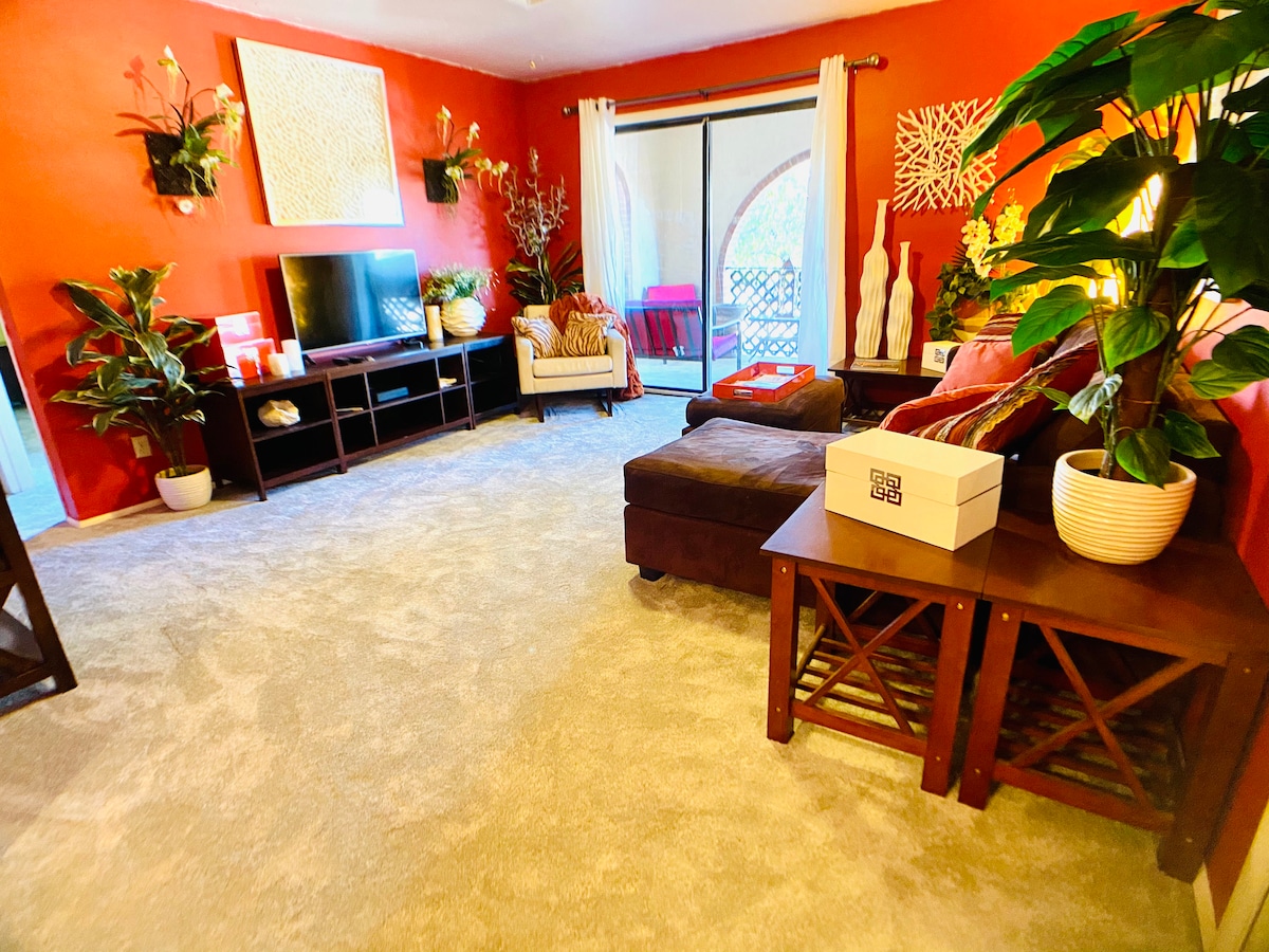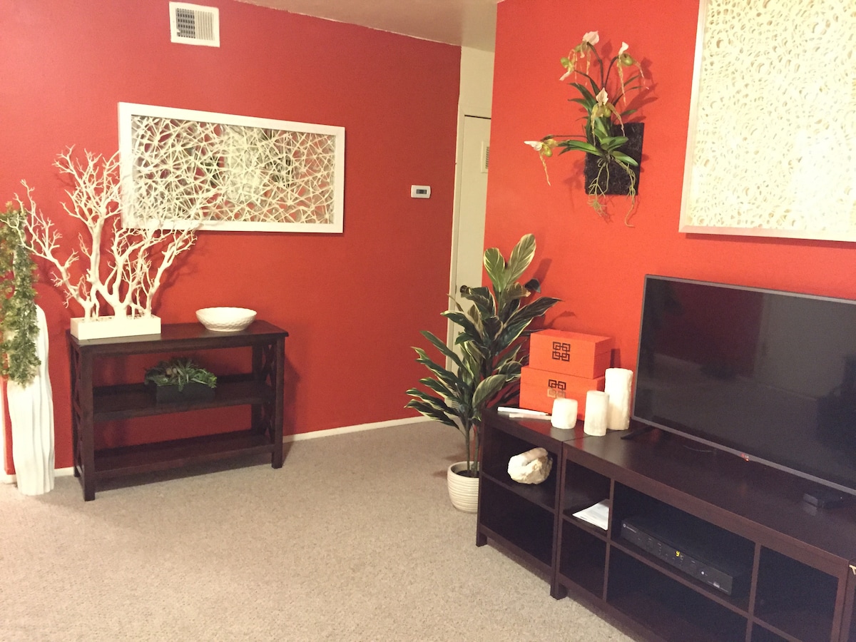 This freshly remodeled apartment features AirCon, 42inch smart TV, new shower, new carpet (an air mattress if extra bed is needed,) view of the mountains and amazing sunset. Laundry facilities available.